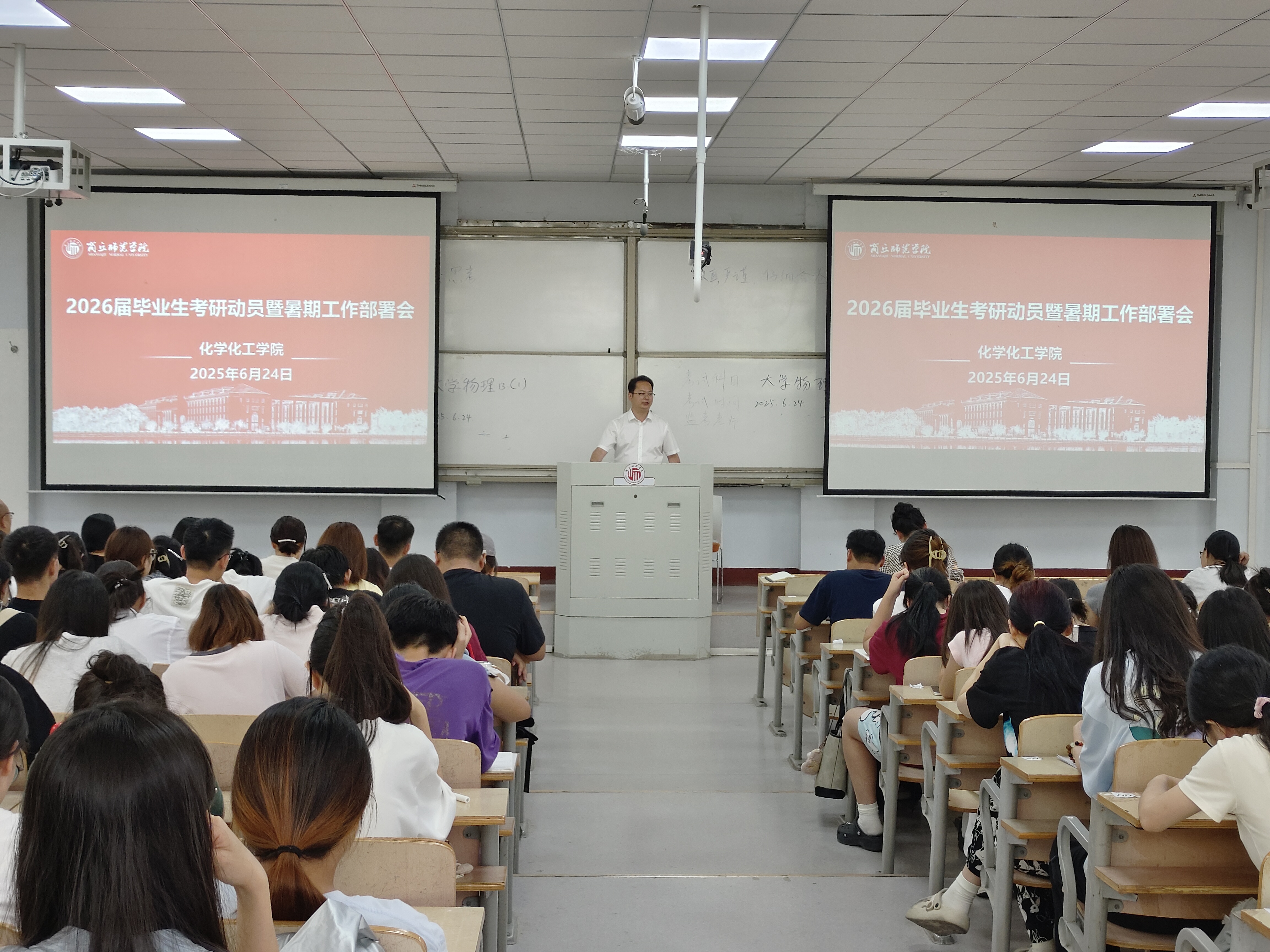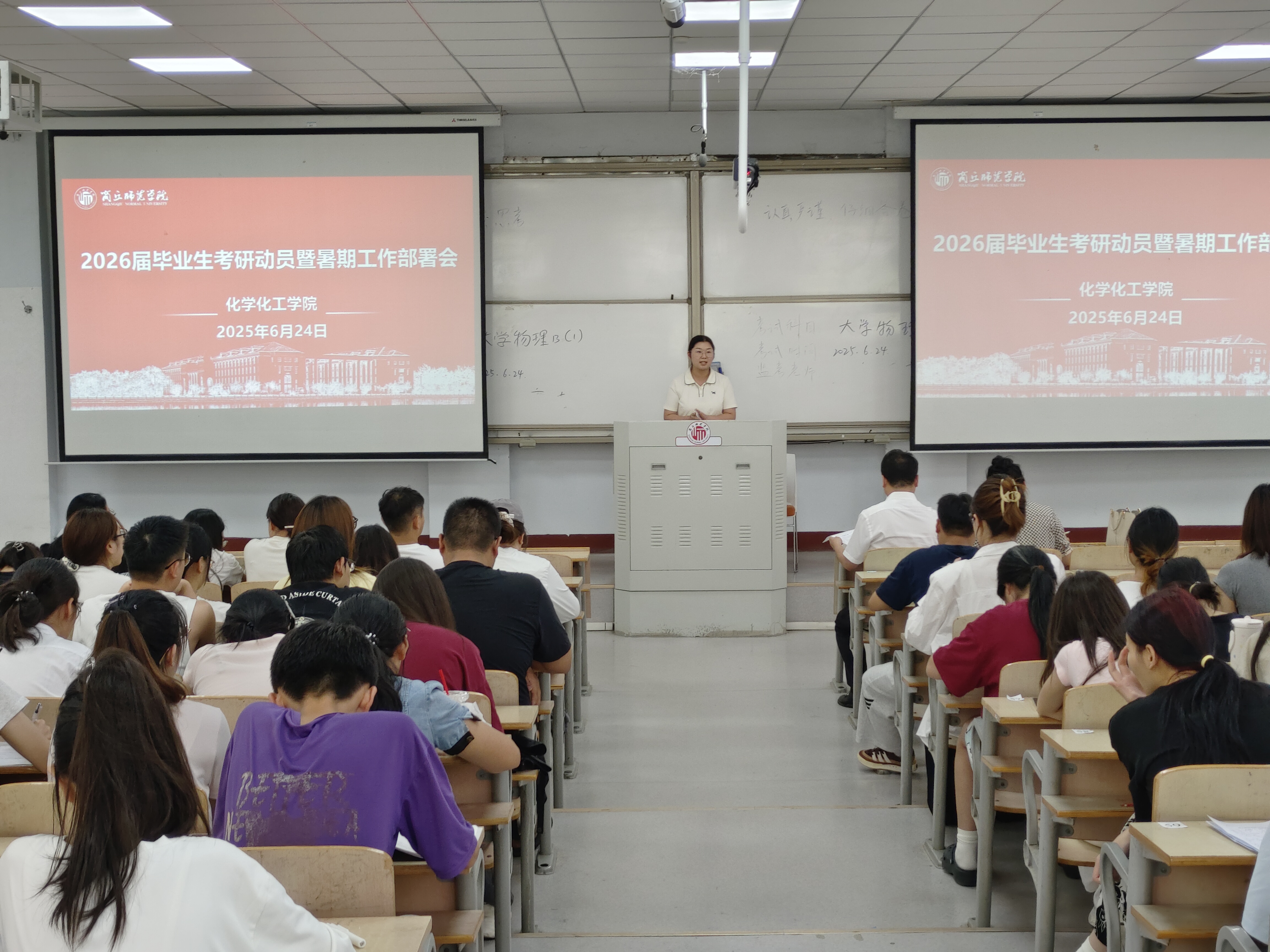 为进一步增强学生考研信心,科学引导备考方向,统筹推进暑期学生工作,6月24日,英国威廉希尔公司在1号教学楼106教室召开了2026届毕业生考研动员暨暑期工作部署会。学院党委副书记张颜梅、副院长王涛,2022级班主任辅导员及2026届全体本科生出席了会议。会议由22级化学专业辅导员王舒欣主持。