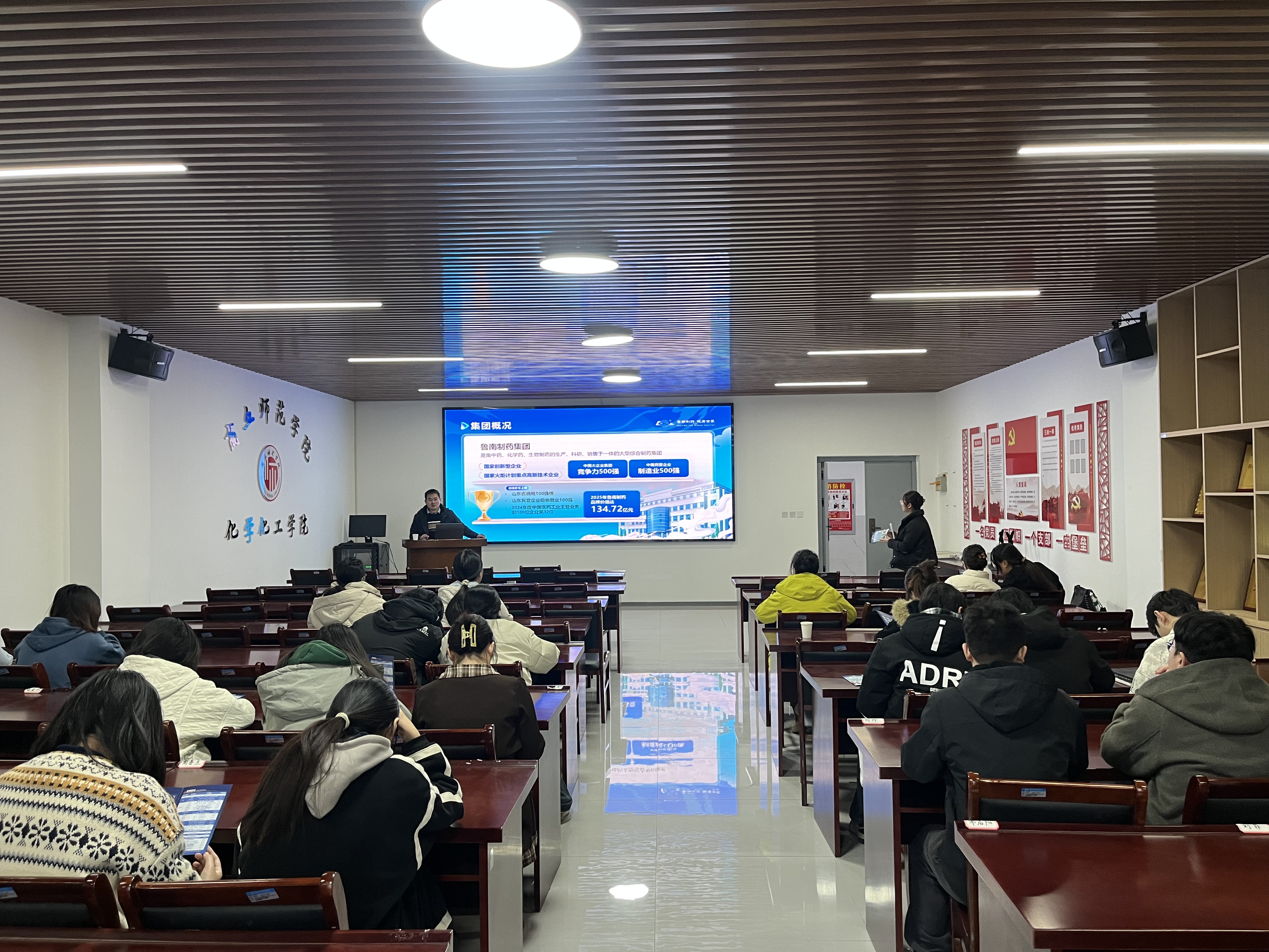 宣讲会上,两家医药企业分别从企业发展历程、核心产品布局、研发平台建设、岗位需求结构、职业晋升通道等方面进行系统介绍,重点讲解制药类相关岗位对专业能力、实践技能以及综合素质的具体要求。企业负责人鼓励学生提前规划职业生涯,提升科研思维、实验操作能力和数字化工具应用能力,为未来进入医药行业奠定坚实基础。
