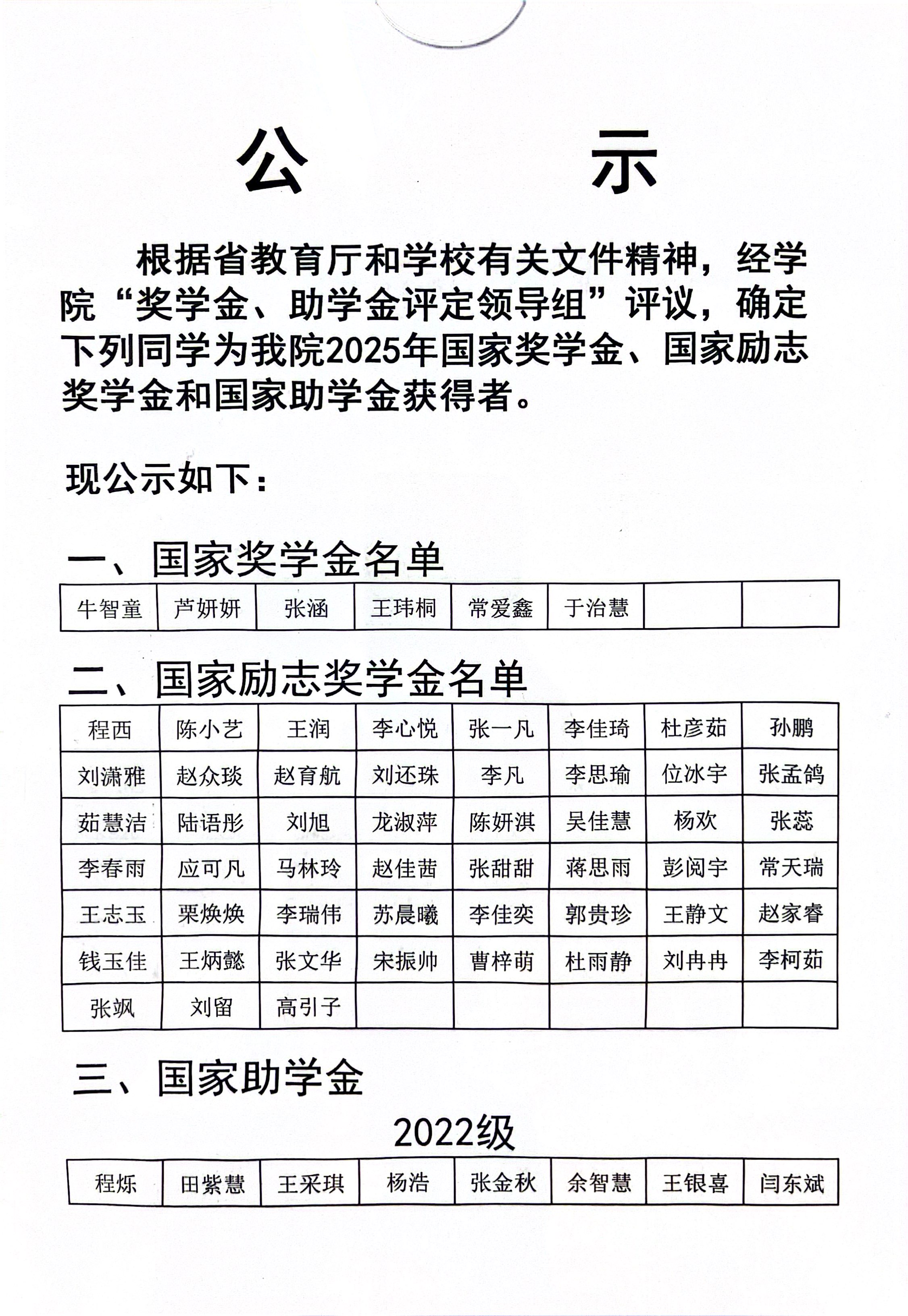 英国威廉希尔公司2025年国家奖学金、国家励志奖学金和国家助学金公示名单