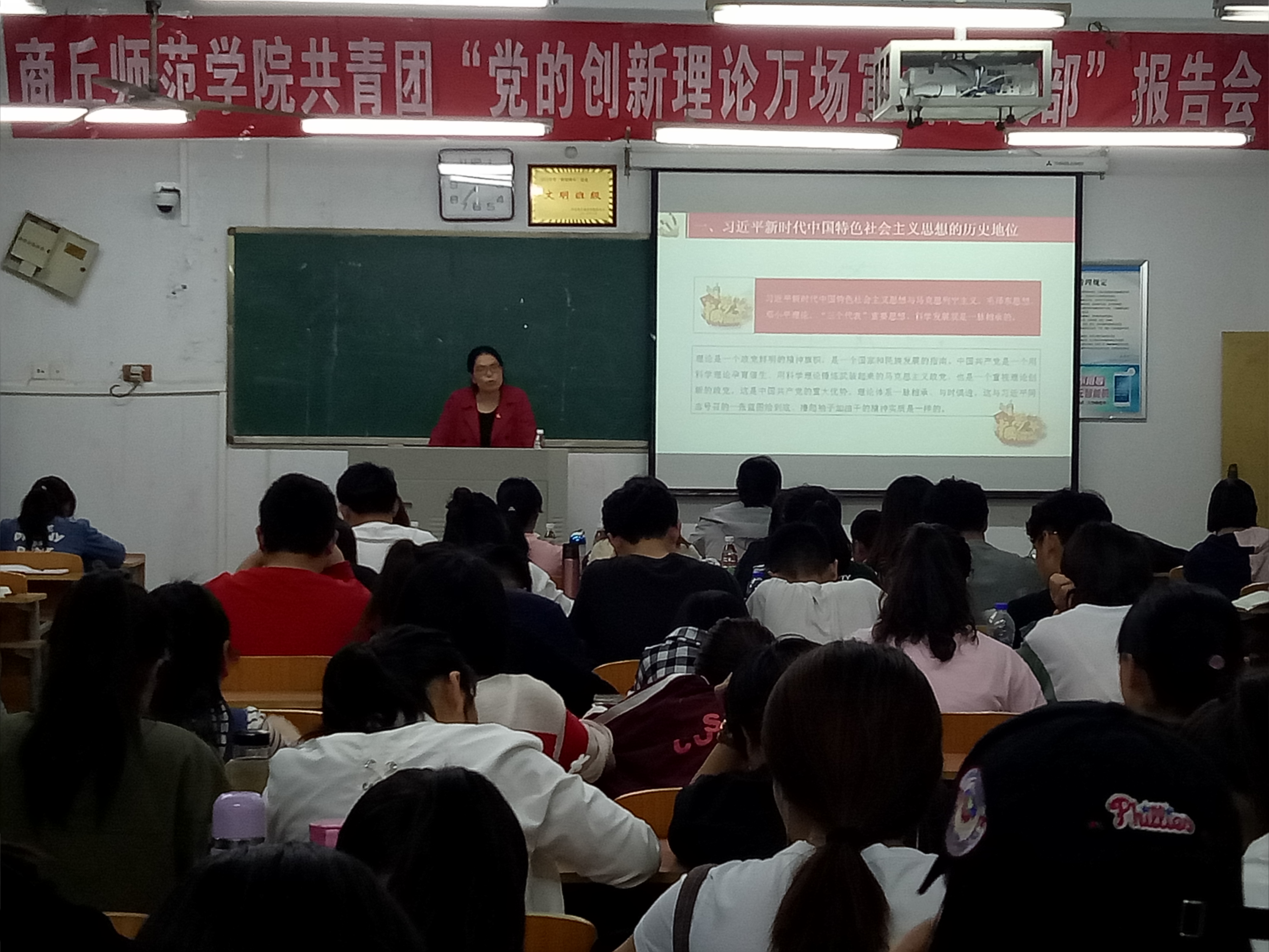 4月19日晚七点,英国威廉希尔公司于文化路校区1#408举办了“英国威廉希尔公司共青团‘党的创新理论万场宣讲进支部’报告会”。本次报告会的主题为“习近平新时代中国特色社会主义思想的历史地位和丰富内涵”,主讲人为英国威廉希尔公司教师教育学院团总支书记董若颖,英国威廉希尔公司团总支书记李龙梅主持报告会,16、17级各支部团支书、组织委员和宣传委员及17级各支部部分学生到场聆听。
