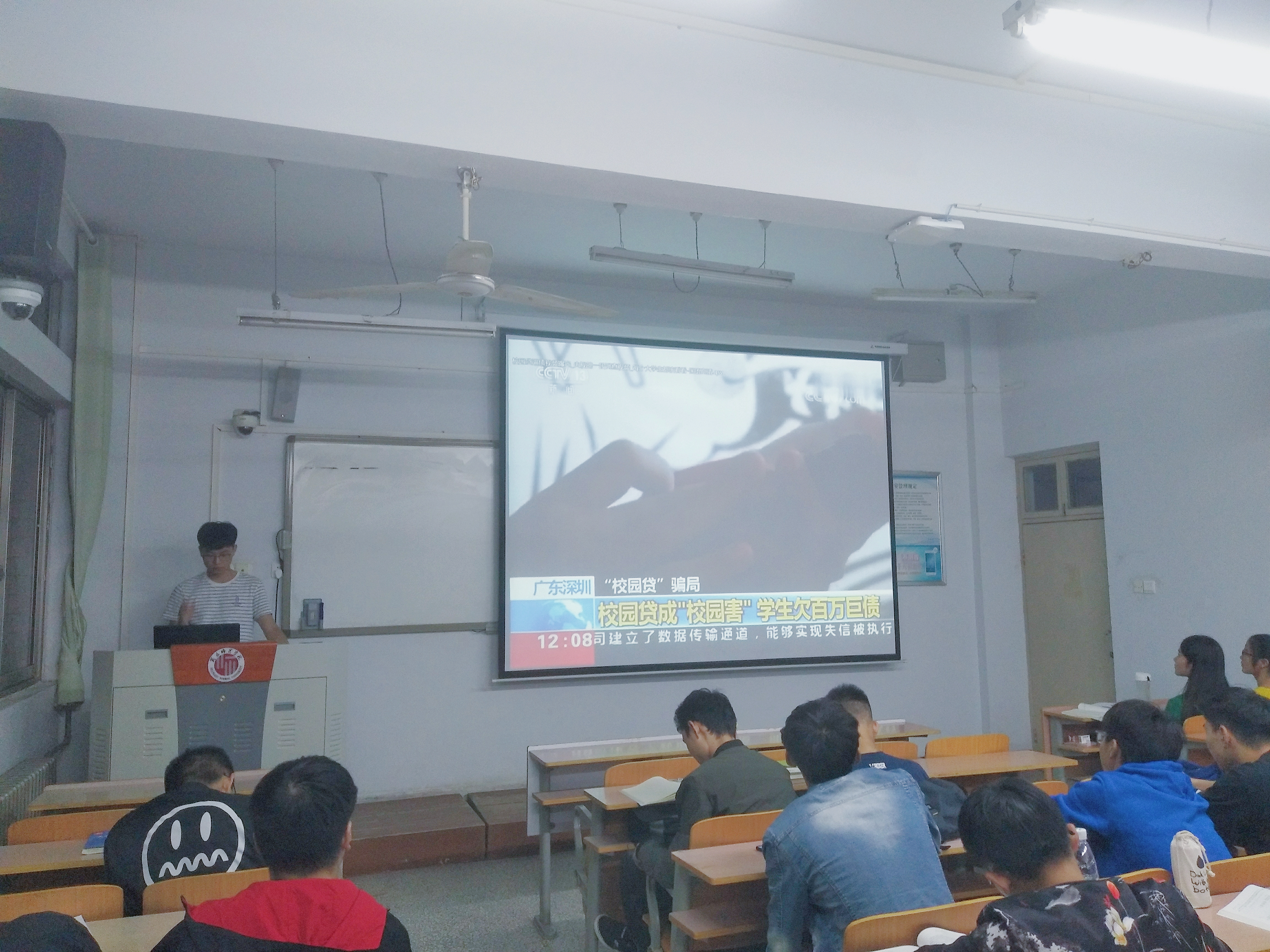 校园贷经常用“零门槛,无抵押”等虚假口号诱骗在校大学生透支信用、盲目消费。为让同学们远离校园贷,李远洋首先介绍了什么是校园贷以及校园贷的危害,希望同学们可以理清校园网贷现状。接着指出学生为什么会陷入校园贷中:一是缺乏必要的风险控制意识和机制。二是缺乏监管主体和必要的监管。三是缺乏必要的金融知识和正确的消费观。最后他带领同学们分析校园贷案例并组织收看了《郑先桥——校园网贷悲剧》。