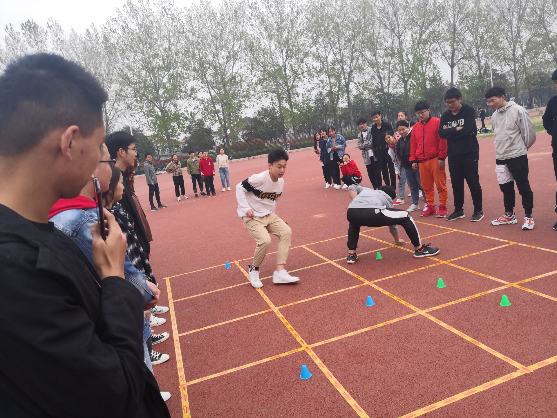 与传统运动会相比,趣味运动会将竞技与娱乐相结合,着重鼓励学生们合作参与,充分发扬团体合作精神,设置了如“友情岁月”、“穿越荆棘”、“身体风暴”等趣味性和协作性于一体的比赛项目。比赛当天虽然天气阴郁,但丝毫没有影响运动员们比赛的激情,个个都表现出了极佳的运动状态,对每一个项目都努力拼搏,团结奋斗。比赛场面热闹激昂,精彩纷呈,为运动员们注入了极大的精神动力。在一下午的比赛中,运动员们累并快乐着。