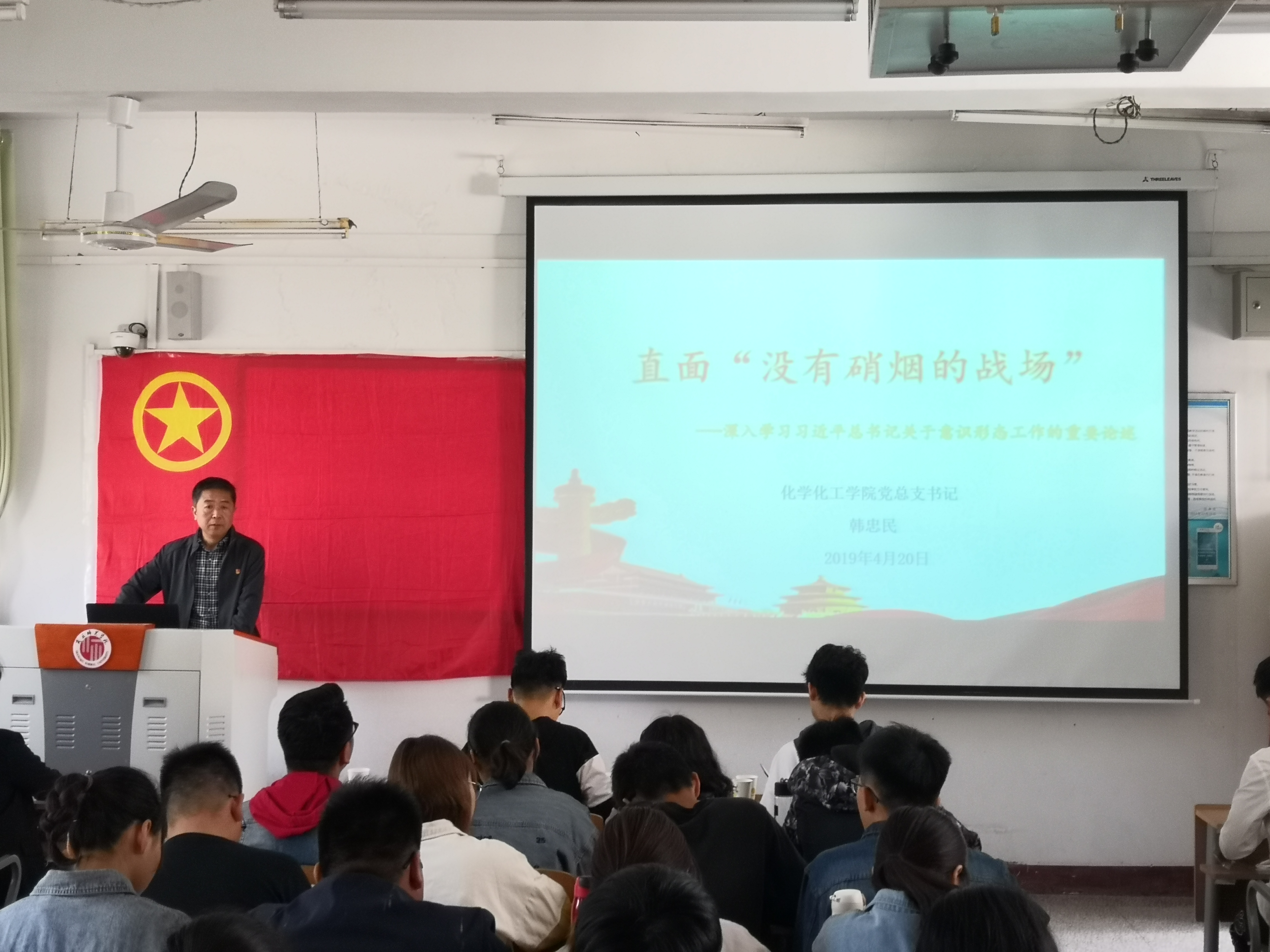 为了提升青马学员的思想政治素质,帮助其了解意识形态的重要性,成长为中国特色社会主义事业的合格建设者和可靠接班人,4月20日上午,英国威廉希尔公司于睢阳校区1号楼409教室举行了培训班第一讲“直面没有硝烟的战场”,第一期青马培训班全体学员参加,党总支书记韩忠民主讲。