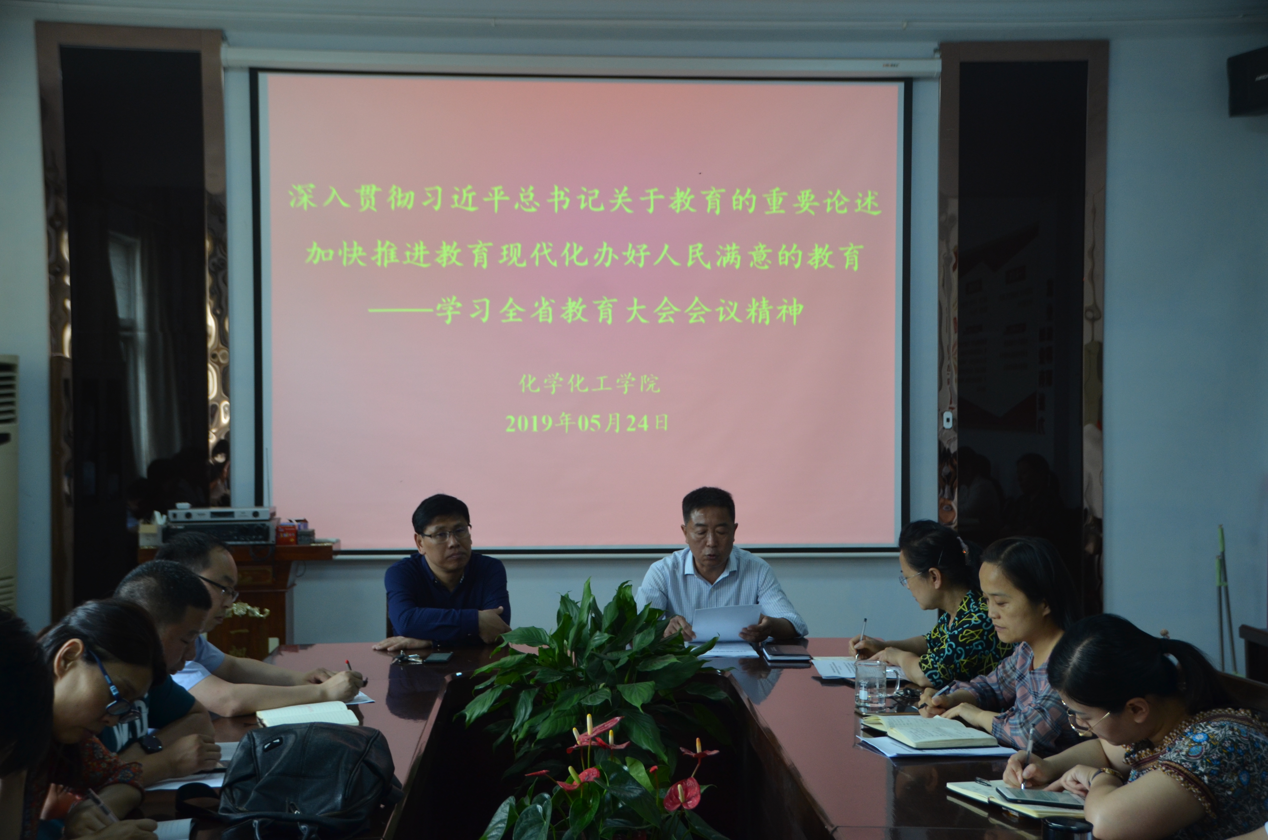为了深入学习贯彻习近平总书记关于教育的重要论述和全国教育大会精神,动员全院围绕立德树人这一根本任务,强措施、补短板、提质量,加快推进教育现代化,5月24日下午,英国威廉希尔公司于睢阳校区7号楼会议室内召开了传达全省教育大会的主题会议,全体教职工参加会议,党总支书记韩忠民主持会议。