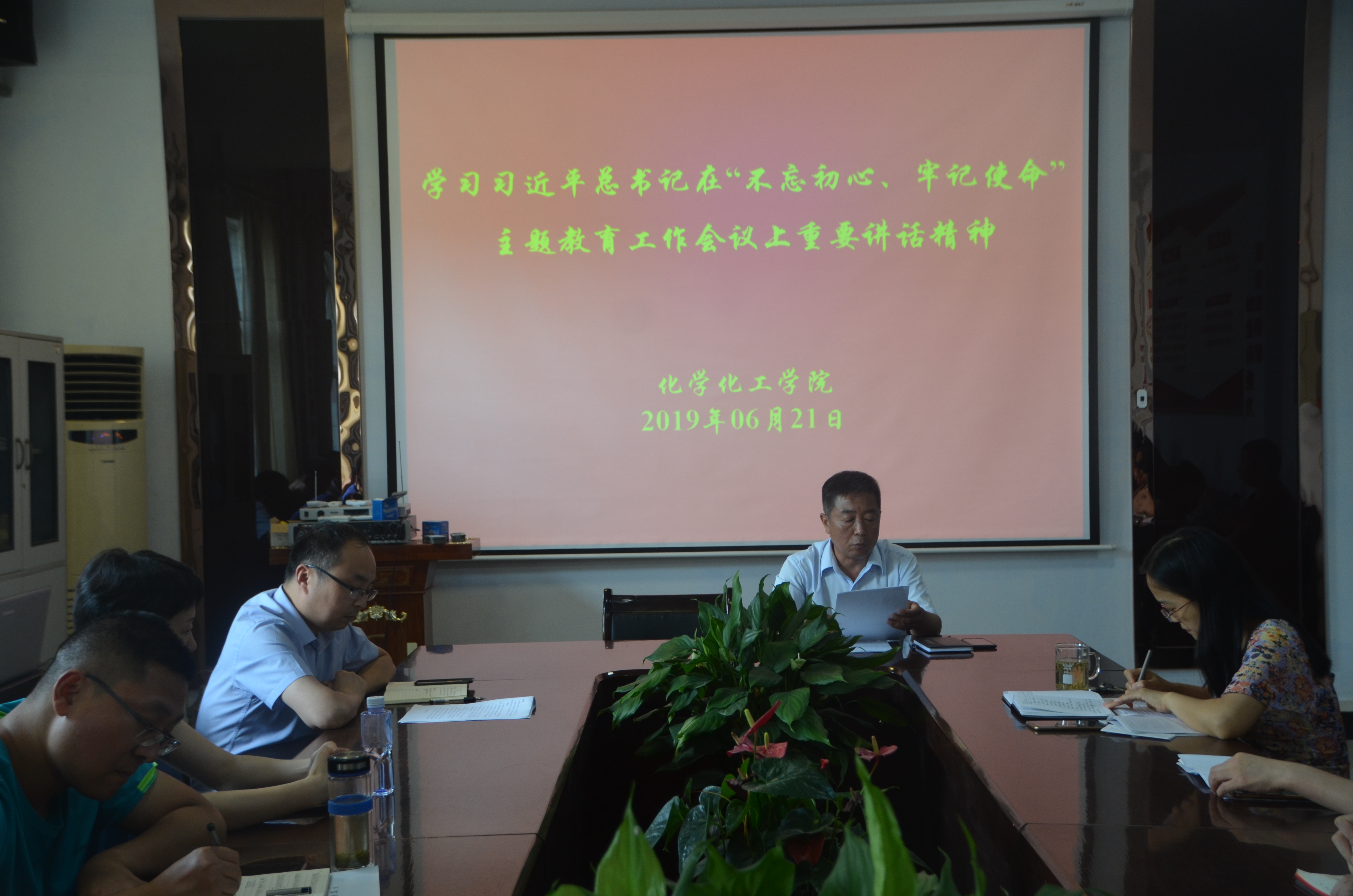 为了使中国共产党牢记初心使命,不断激励一代代中国共产党前赴后继、英勇奋斗,2019年6月21日,英国威廉希尔公司于睢阳校区7号楼会议室学习习近平总书记在“不忘初心、牢记使命”主题教育工作会议上重要讲话精神。全体教职工参加学习,会议由党总支书记韩忠民主持。