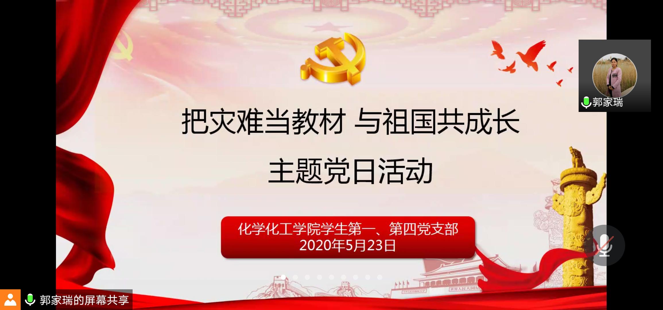 为持续推进“把灾难当教材 与祖国共成长”主题教育活动,2020年5月23日上午10点英国威廉希尔公司学生第一、四党支部在线开展了“把灾难当教材与 祖国共成长”主题党日活动,第四支部书记郭家瑞主持,学生第一、四党支部全体学生党员参加。