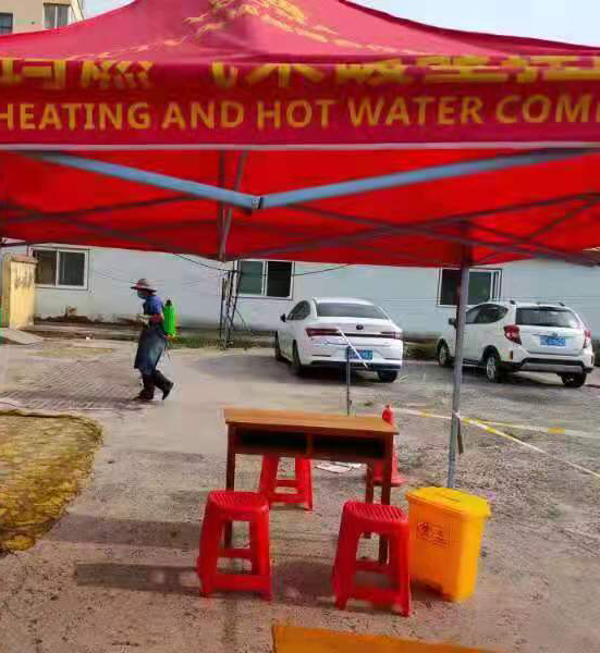 张美晨在布置核酸检测点