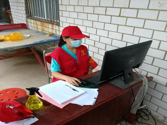 时间紧,任务重,狄源梦作为志愿服务队的一员,积极通过线上线下相结合的方式提醒全体村民进行核酸检测,确保做到不漏一户,不漏一人。她主要协助工作人员布置检测点,调试电脑设备,登记信息资料,做好后勤保障为核酸检测提供最优条件。即使汗水浸湿了身上的“红马甲”,声音喊到沙哑,但服务的热情却丝毫不减,确保了核酸检测顺利高效进行。
