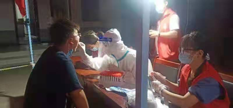 核酸检测中,赵思涵身穿防护服,顶着炎炎烈日,有序开展工作。她说:无论贡献的力量是大是小,对我来讲都是一次意义非凡的体验。我将一直参与志愿活动,为自己的家乡贡献力量。