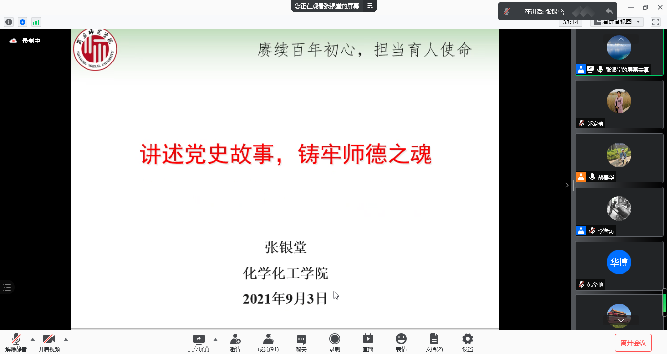 9月3日,英国威廉希尔公司开展了“赓续百年初心,担当育人使命”2021年教师节庆祝活动,院长张银堂以“讲述党史故事,筑牢师德之魂”为题做了师德师风专题报告,院党委书记李海涛主持报告会。