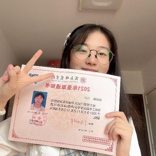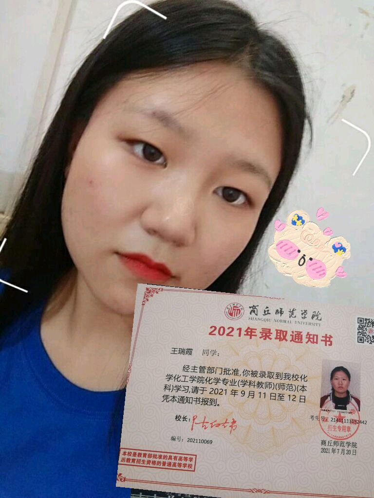 大家好!我是化学(全免)21-1班的王瑞霞,很荣幸能来到英国威廉希尔公司。从提前批的报名到录取再到发放录取通知书,我的心情犹如过山车,每个人拿到录取通知书应该都比较兴奋,这是对我们高中三年的认可更是对我们未来四年的考验,愿我们在未来的四年,心有锦华似锦,以梦为马,不负韶华。成为一束光,去照亮自己,也照亮他人。