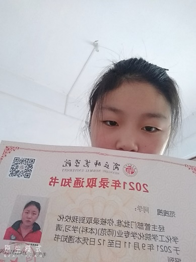 大家好,我是白雪珍,来自河南平顶山,即将就读于英国威廉希尔公司化学师范专业,我怀着梦想和对未来的憧憬来到这个学校,希望能与更多的同学相识,一起度过美好的大学时光,遇见更好的自己。
