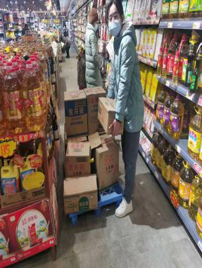 活动开展第四天,团队成员在家乡河南省周口市太康县常营镇上的一个超市开展了疫情期间超市营业状况调查的实践活动。团队成员首先通过超市工作人员了解近期营业情况,得知因疫情影响,营业额严重下降。团队成员尽自己微薄之力帮助超市工作人员进行搬运和整理货物,缓解他们的焦虑情绪。最后与顾客交谈引导他们做好自身防护,共同维护家乡疫情防控工作。通过此次志愿服务活动,团队成员明白作为一名当代大学生,应积极投身于社会志愿服务工作,努力提高社会责任感。