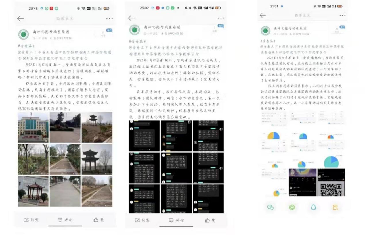 1月15日,梦屿星辰队成员在各自家乡通过拍摄家乡的变化风景图,进一步理解与感悟了乡村振兴战略实施的重大意义,了解了通过实施乡村振兴战略,能够帮助农村地区实现产业融合,通过“精准扶贫+乡村振兴”让农民实现脱贫致富,让农业实现升级转型,让农村实现生态宜居,因地制宜,满足了人民对美好生活的需求。