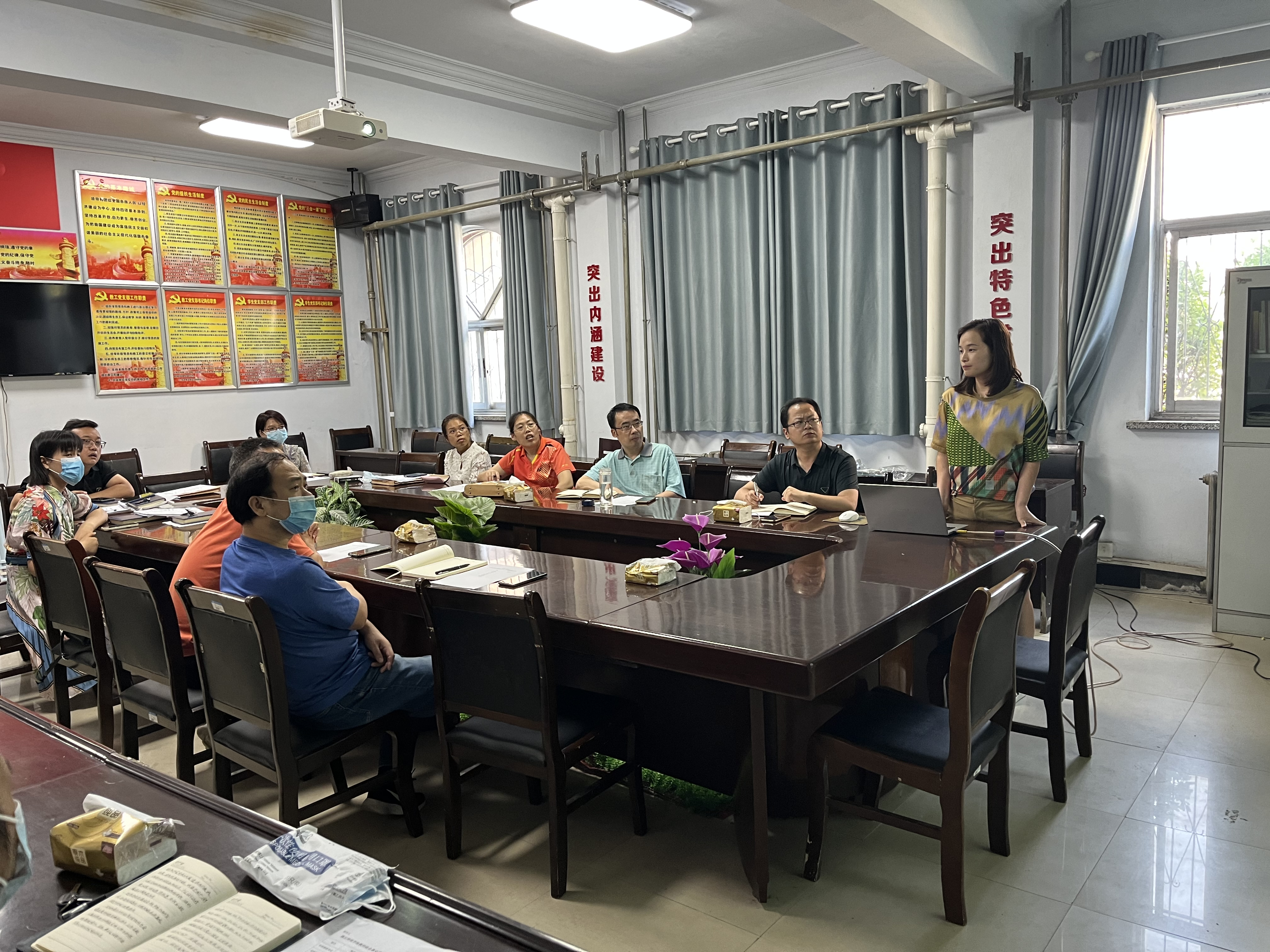 实践锻炼教师根据考核通知要求,结合自己的实践锻炼经历,重点汇报了实践锻炼的目标任务完成情况和个人教学能力、科研能力、综合素质等方面的收获,并回答了考核组的提问。考核组成员在认真听取教师汇报、提问点评后,仔细审阅了实践锻炼教师的工作记录、考核表、总结报告、工作照片、单位鉴定意见、考勤记录等材料,对每一位教师作出了综合评价。