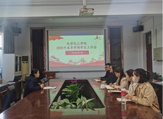会上,张颜梅向大家传达了学校2023年党建与思想政治工作会议精神,并带领大家深入学习了《“六个必须坚持”继续推进理论创新必须始终坚持的基本点》、《党委会的工作方法》、《牛保良:毛泽东在“古田会议”上谈如何开好党的政治会议》,张颜梅强调我们学生管理工作一定要讲究工作方法,把我们学院的学生管理工作提高一步;就学生心理健康工作,张颜梅要求辅导员应做到摸清底数,完善心理健康档案,重点关注心理亚健康学生,着力打造学院心理健康工作品牌;就宿舍安全卫生、宿舍内部关系等方面工作,张颜梅强调应树立底线思维,持续深入学生宿舍,了解学生诉求,及时帮助学生解决问题,对重点学生定期开展谈心谈话,了解学生所思所想,加强心理健康教育。
