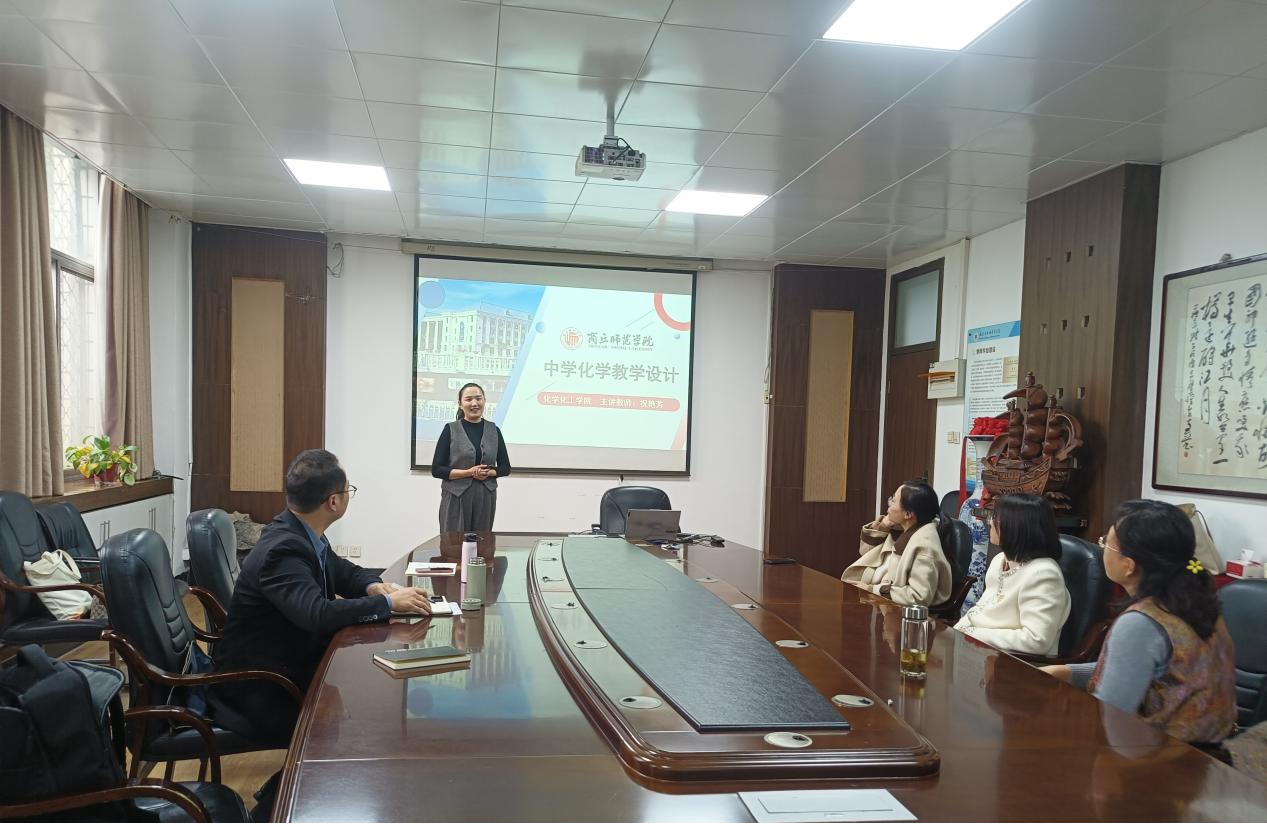 首先,刘建全副院长和王涛副院长分别介绍了近年来学院在师范生培养、课程建设、教师发展、学科竞赛等方面的举措及所取得的成果。随后,双方学院学科教学论骨干教师祝艳芳、赵玲玲、刘晓芹分别围绕任教课程《中学化学教学设计》《化学教学论实验》的培养目标、课程实施方案、课程开设特色以及师范生教学技能大赛相关工作展开分享,并进行了深入交流。