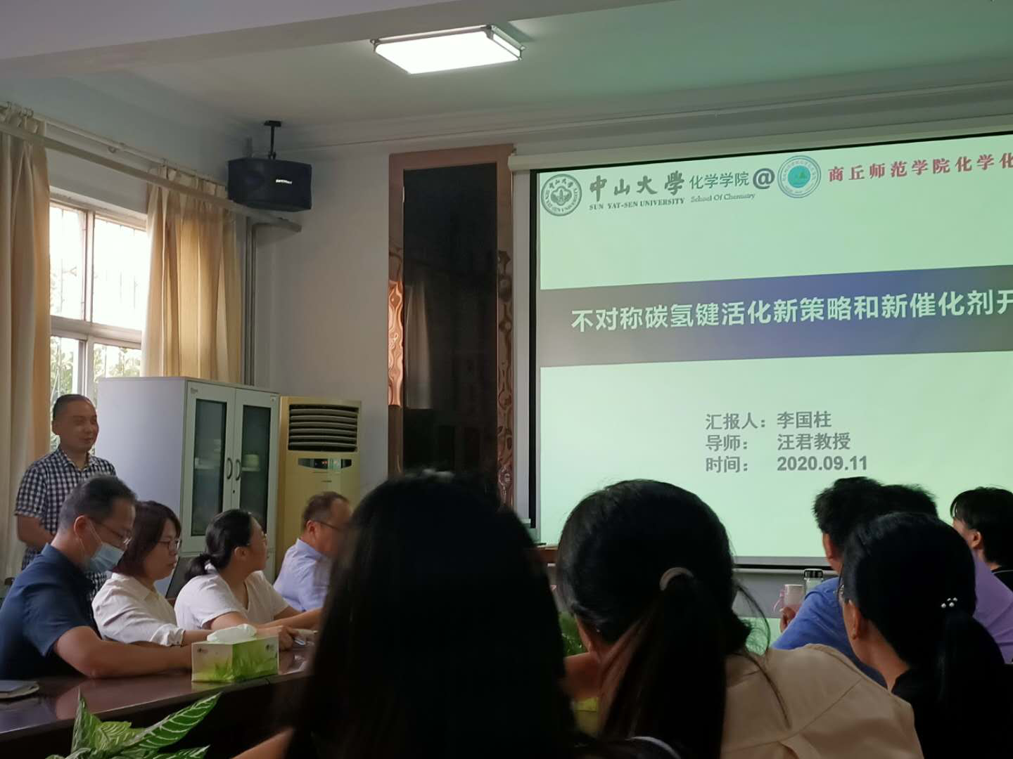 2020年9月11日下午,英国威廉希尔公司英国威廉希尔公司进行了本学期第一期博士论坛。青年教师李国柱博士在文化路校区7号楼英国威廉希尔公司一楼会议室做了题为《不对称碳氢键活化新策略和新催化剂开发》的学术报告。本次博士论坛由副院长周艳丽主持,英国威廉希尔公司全体教师参加了论坛。