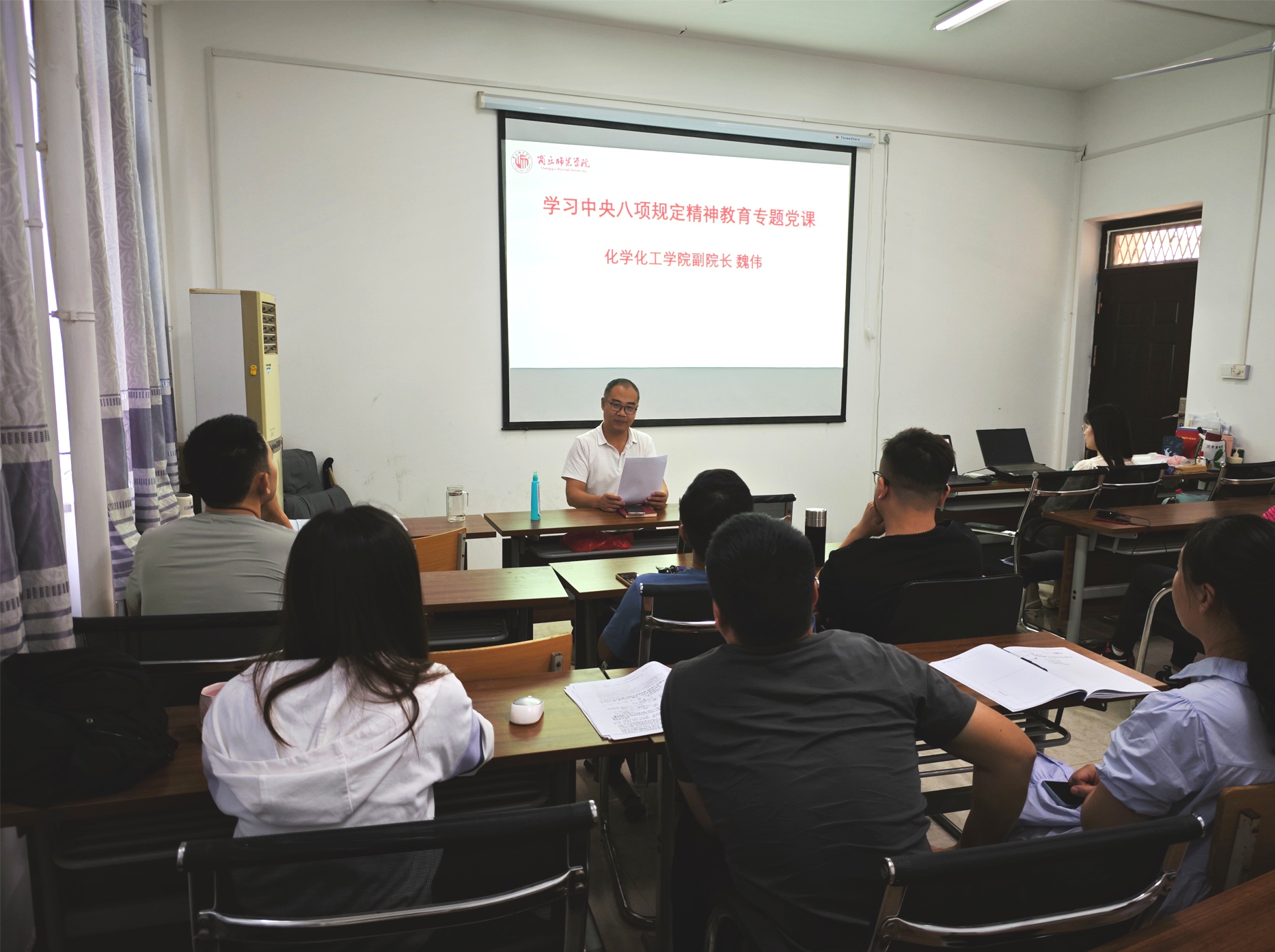 宣誓结束后,副院长魏伟同志为全体党员讲授了学习贯彻中央八项规定精神专题党课。党员们一致认为,党的十八大以来,以习近平同志为核心的党中央以上率下、严抓作风建设,推动党风政风持续好转,为党和国家事业发展提供坚强保障。