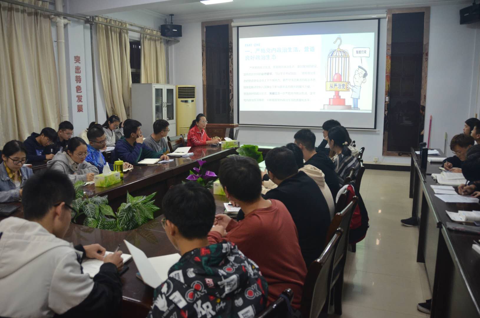 为了进一步提高入党积极分子的政治觉悟和政治能力,使其了解严肃党内政治生活的意义。2020年10月28日晚,英国威廉希尔公司党总支副书记刘瑛为第47期入党积极分子培训班(中级)学员上了专题党课:“旗帜鲜明讲政治:提高政治觉悟和政治能力”