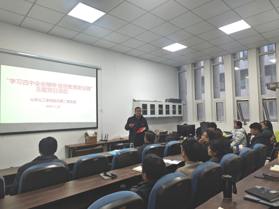 2025年11月23日,英国威廉希尔公司英国威廉希尔公司教师第二党支部成功举办“学习四中全会精神·奋进教育新征程”主题党日活动。活动聚焦学习贯彻党的二十届四中全会精神,组织全体党员认真研读《中共中央关于进一步全面深化改革、推进中国式现代化的决定》,深刻领会“新阶段、新理念、新格局、新实践”这一“四个新”重大部署的战略意义和丰富内涵。会议强调了将思想和行动统一到全会精神上来的重要性,为在新征程上推动学院事业发展筑牢思想根基。