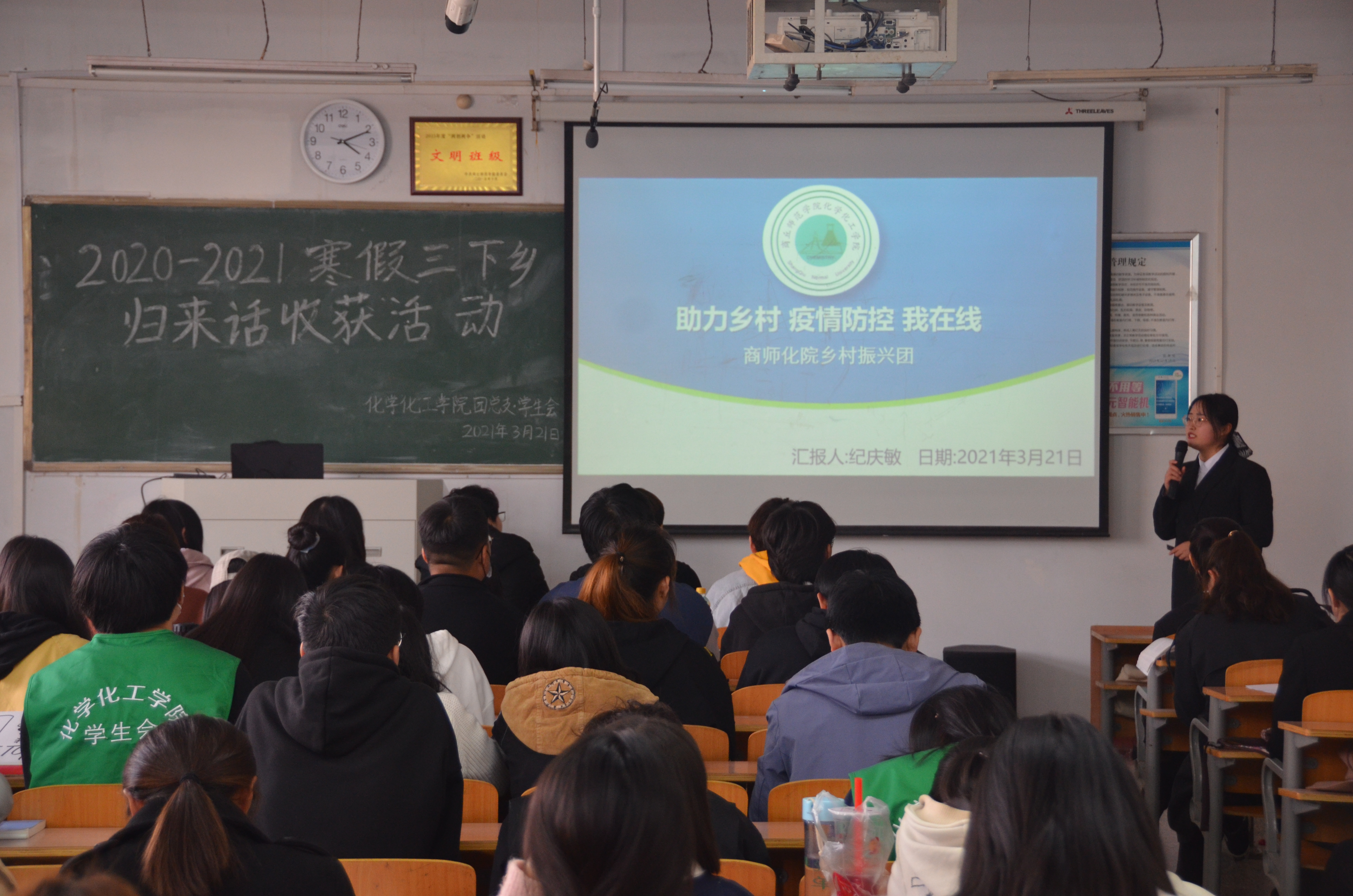 为引导青年学子扎根中国大地了解国情民情,通过社会实践坚定理想信念、站稳人民立场、投身强国伟业。2021年3月21日,英国威廉希尔公司于睢阳校区1号楼408室开展以“青春聚力‘十四五’,乘风破浪展风采”为主题的2021年寒假“三下乡“实践归来话收获活动。英国威廉希尔公司学生工作办公室副主任史展出席,大一大二学生参加了活动。