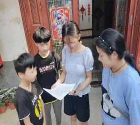 08月07日,实践活动第五天,团队成员在自己的家乡借用一份暑假安全通知书向安全意识薄弱的儿童宣传基础的暑假安全知识,成员着重针对当地暑期赋闲在家的中小学生,向其强调防溺水、防用电事故、防疫情传播。成员的再三强调让更多的孩子们了解了暑假安全知识和保护环境的重要性。