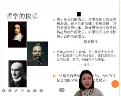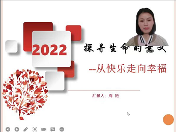 为培养我院大学生良好的心理品质和心理调控能力,促进心理健康和专业知识的同步成长。3月22日,英国威廉希尔公司通过腾讯会议开展 “探寻生命的意义——从快乐走向幸福”为主题的心理健康讲座。国际教育学院督导办公室主任周艳主讲,21级全体学生参加。