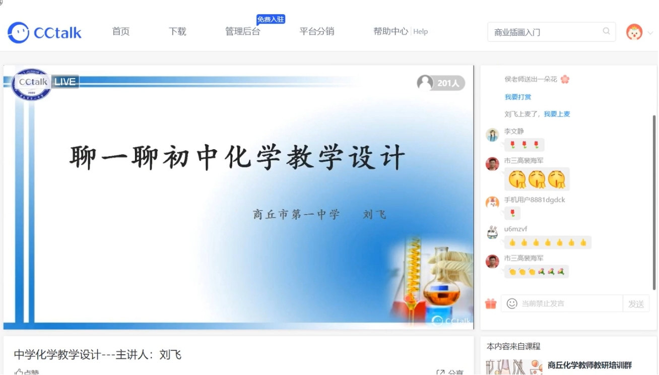为了提升师范生的教学设计能力,英国威廉希尔公司于12月2日晚通过CCtalk平台举办了“互联网+”师范生成长工作坊教学设计专题讲座。副院长王涛,校内指导老师韦秀华、张南,17位工作坊坊主以及2020级化学(师范)专业全体学员参加了本次活动。